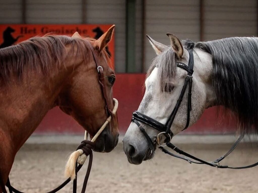 Cash is een American Quarter Horse en wordt ‘western’ gereden. Arcadio is een Andalusiër en daar wordt dressuur mee beoefend.